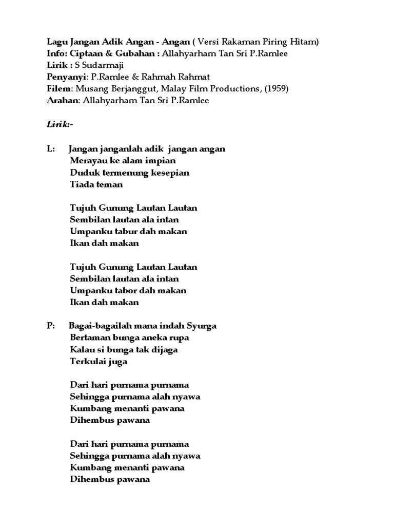 Kunci Dan Lirik Lagu Malaysia 2 4 0 Apk Androidappsapk Co from img5.androidappsapk.co Rupa kamu yang cantik mata kamu yang bulat membikin pemuda jadilah gembira. Koleksi lagu terbaik filem p. Hidungmu yang mancung rambutmu keriting membikin pemuda sehari hari menaruh cinta padamu o. Download lagu p ramlee lirik mp3 gratis 320kbps (4.32 mb). Maaf kan kami.bujang lapuk p ramlee mp3 duration 4:04 size 9.31 mb / norma nba channel 3. Koleksi lagu terbaik filem p. Di hari raya terkenang daku kepada si dia kampungku indah nun jauh di sana ayah serta bondaku di tepian mandi danauku hijau yang aman damai selalu nun di sanalah tempat aku bertemu aku dan dia. Lagu nak dara rindu ( versi rakaman piring hitam).